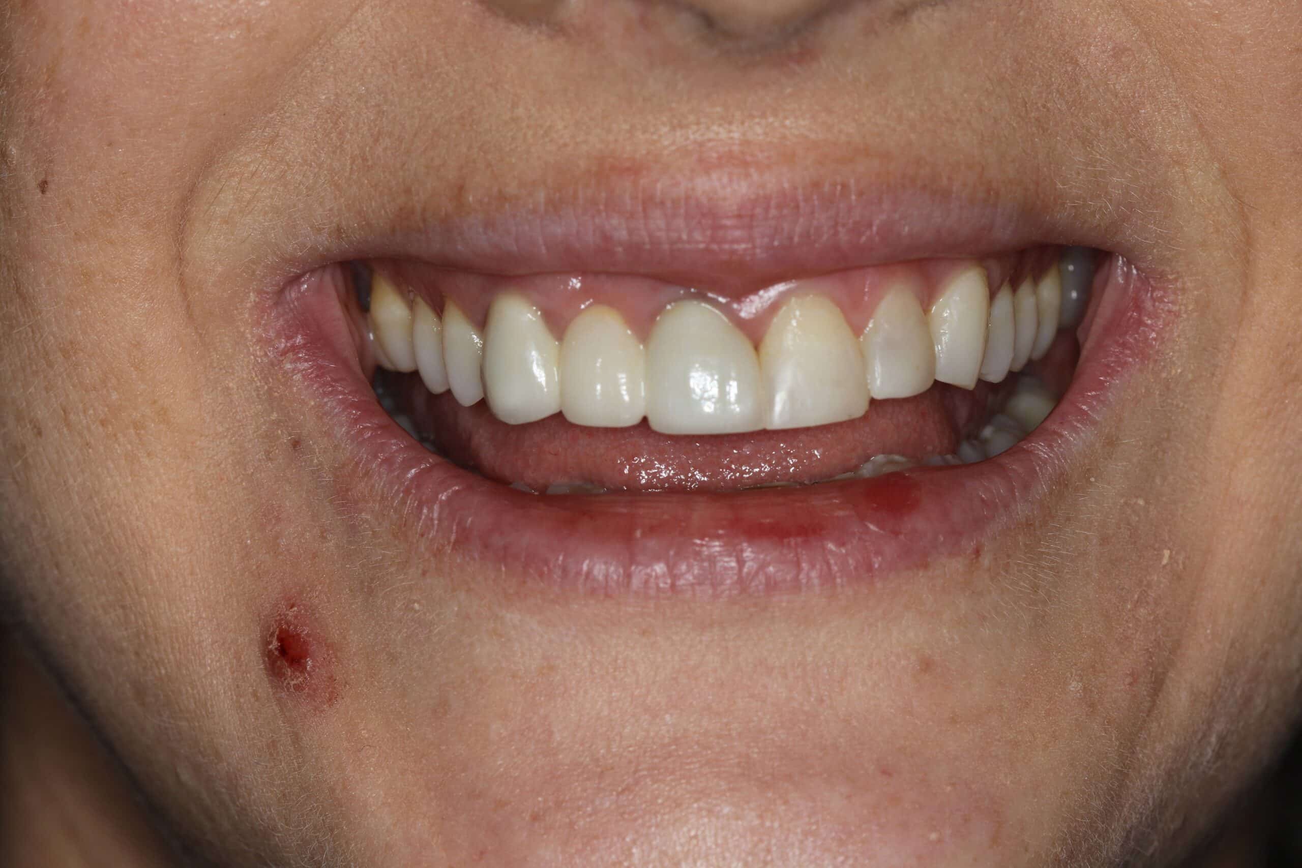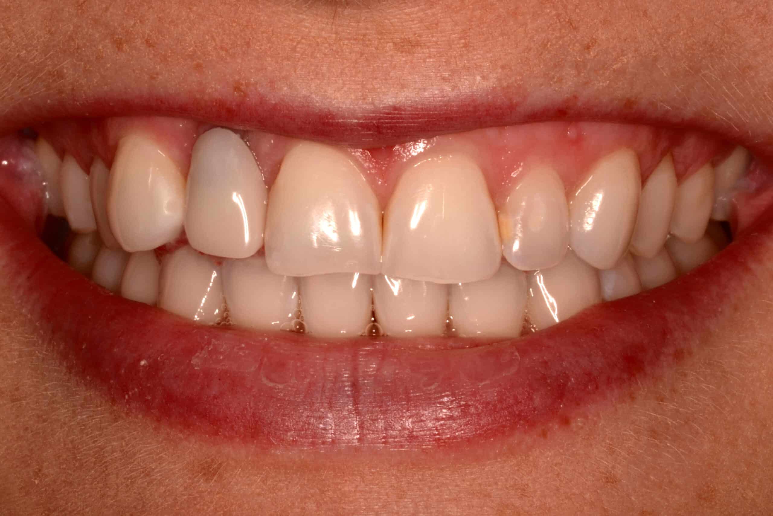 This patient was frustrated with the continuous chipping of her front tooth. “I am done with the patching. I want things fixed right.”